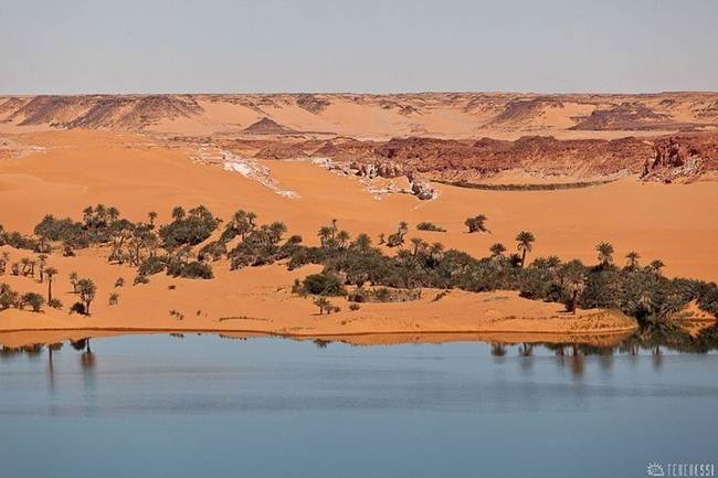 In the extremely arid area of Northern Chad, where the average annual rainfall barely exceeds 2 millimeters, is a chain of 18 lakes "Ounianga."